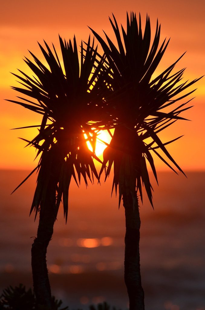 Coconut palms shedding fronds